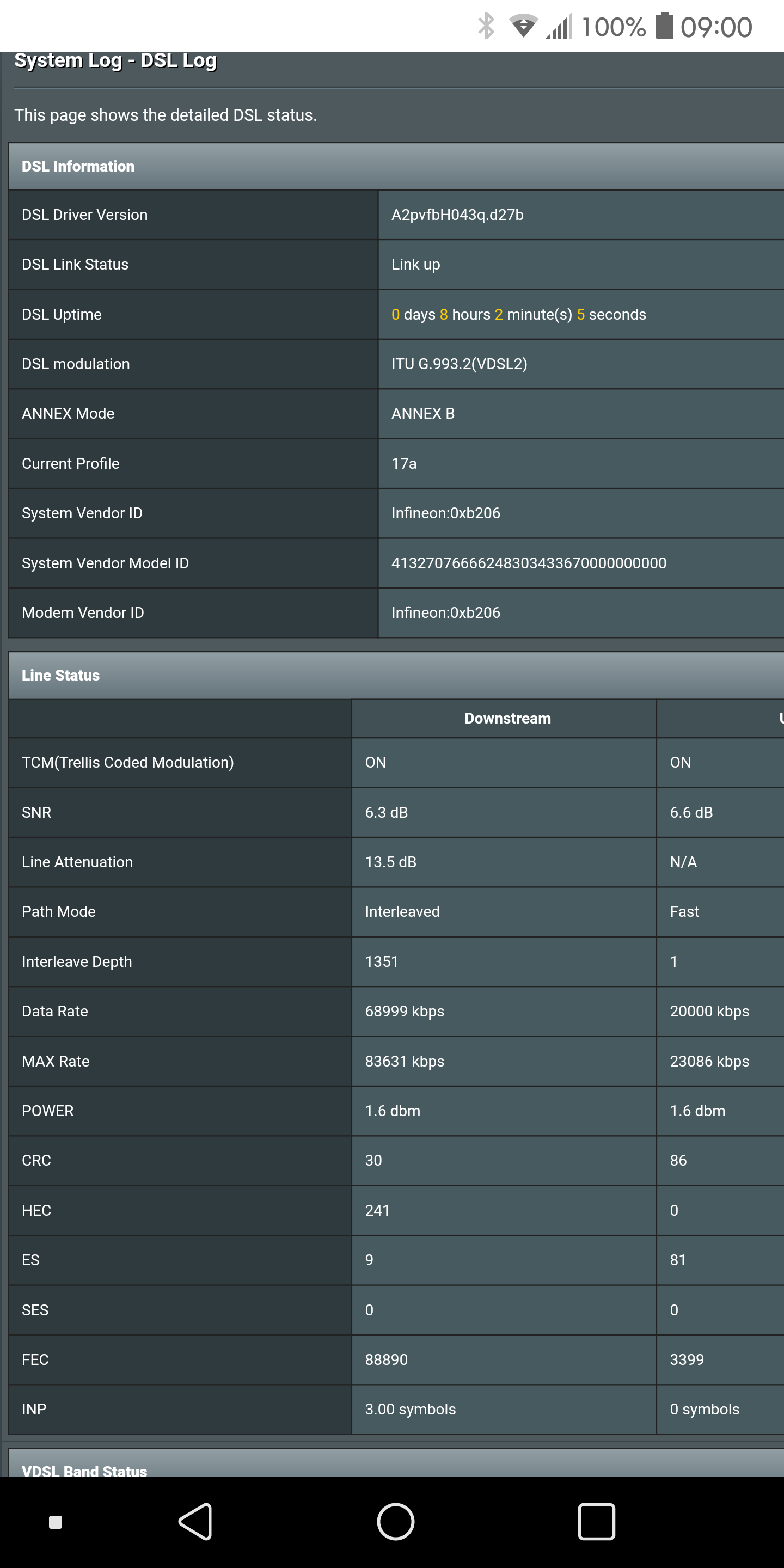 August 9, 2019 at 10:06 am #3726August 9, 2019 at 10:12 am #3728August 9, 2019 at 10:22 am #3730Well, infineon to infineon may give lower sync and lower ping, but broadcom in infineon always sync higher. @sentinel uk Just a small update to yesterday screenshot, because of milion fec errors download is on cap now and upload is on fast patch (resync last night) . Good think is that is a lot less errors now so maybe these wonโt be to bad for DLM.