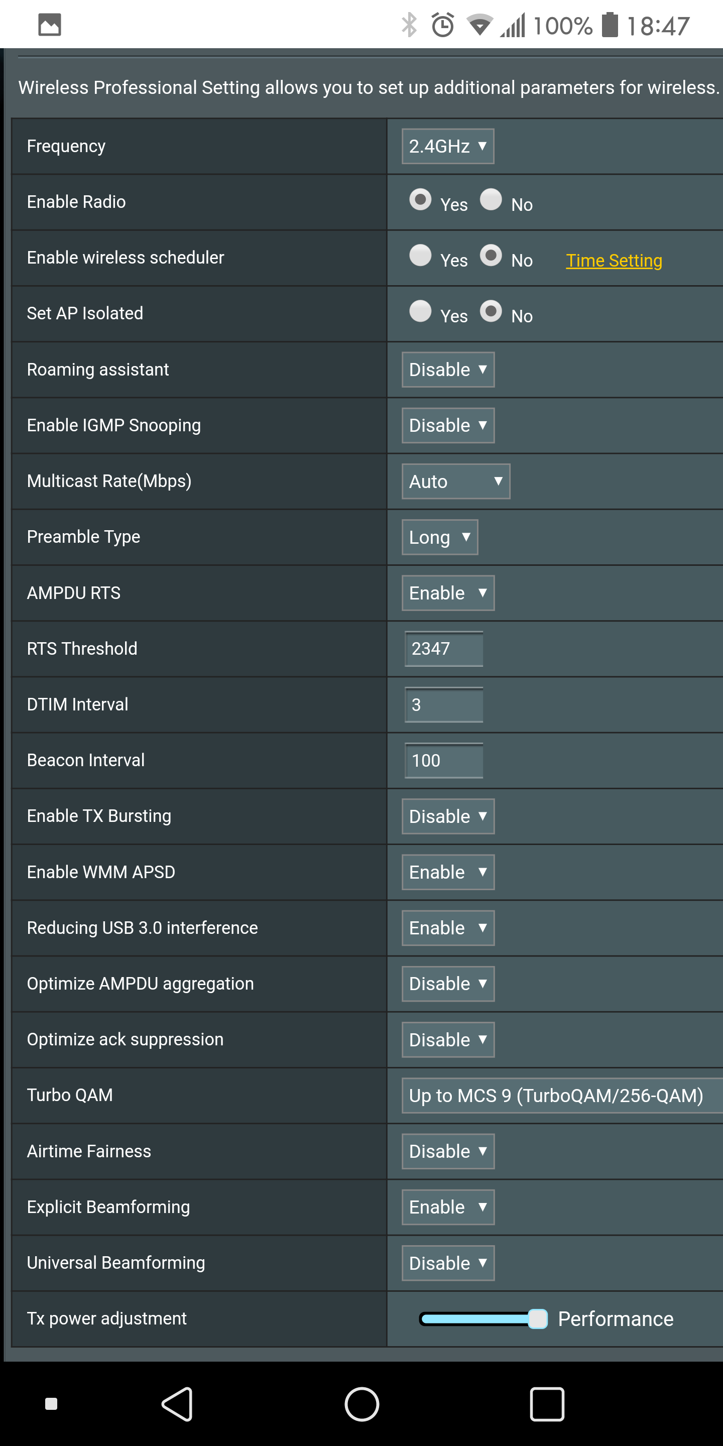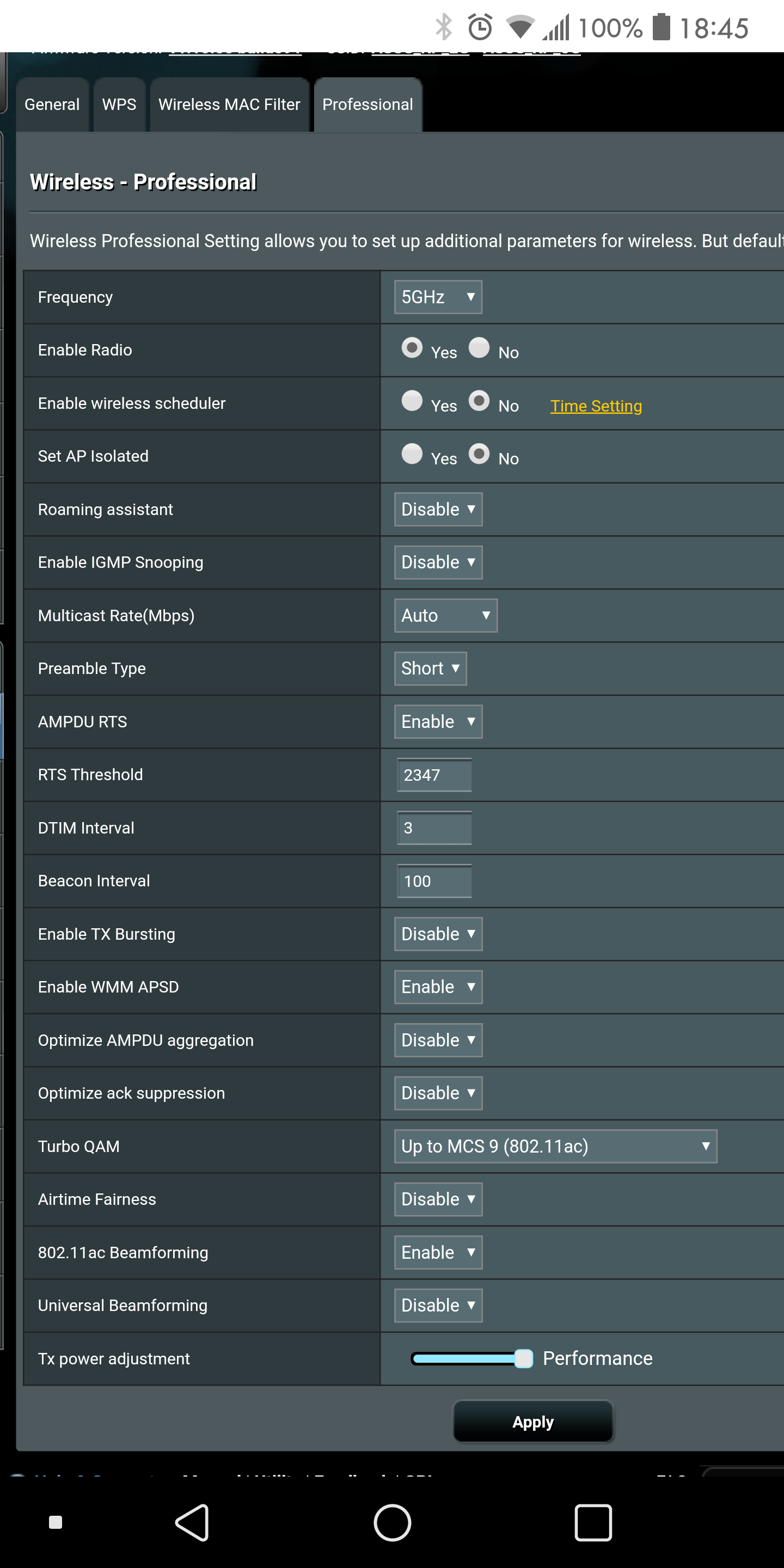 August 30, 2019 at 3:33 pm #4079for wifi disconnects, try Wireless > Professional and Disable Airtime Fairness for the Wifi Band you have problems with