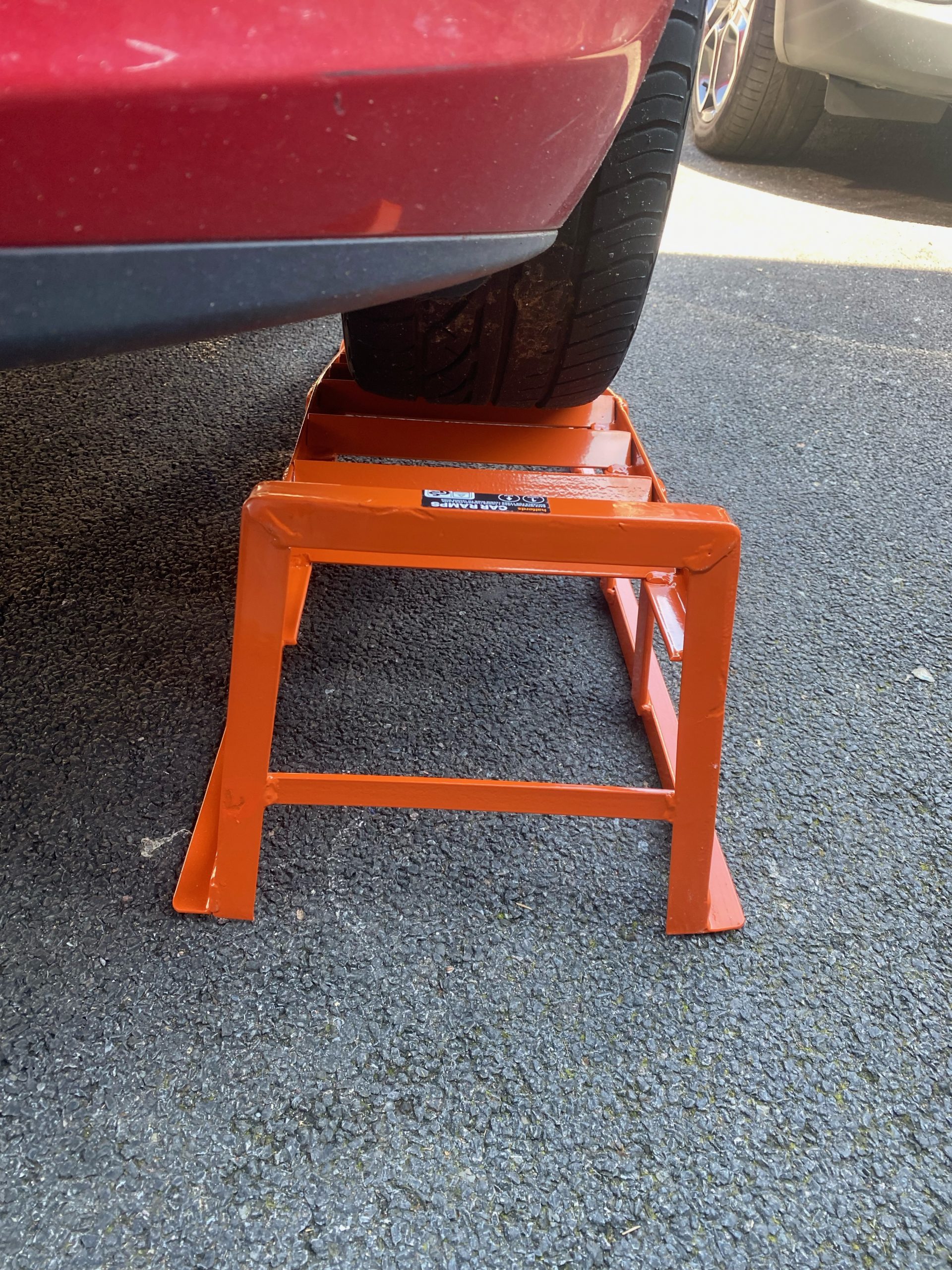 Ideally a car ramp that is strong, good value, easy to transport and has a gradual incline so the cars bumpers do not rub the car ramp on the way up.
