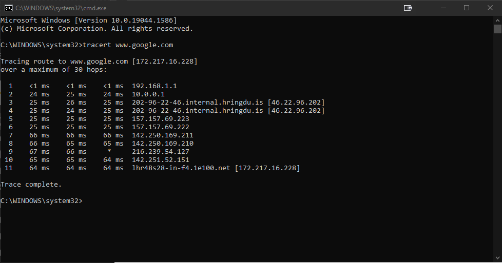 and also type ‘pathping 1.1.1.1’ and Nslookup and try Google.com if you could ?
