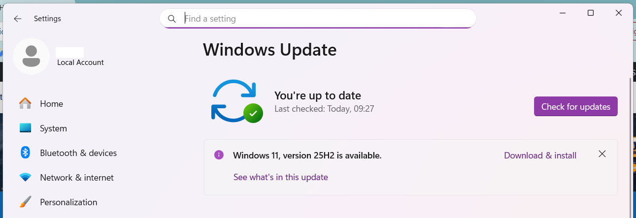My Dell Laptop at long last is telling me that Windows 11, version 25H2 is available and ready for download.