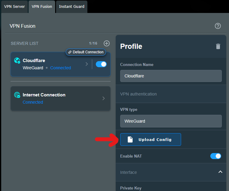 You don’t need to know that much detail. When we import the configuration file (such as wgcf-profile.conf), it doesn’t import correctly and doesn’t work properly, Asus just needs to be aware of this.