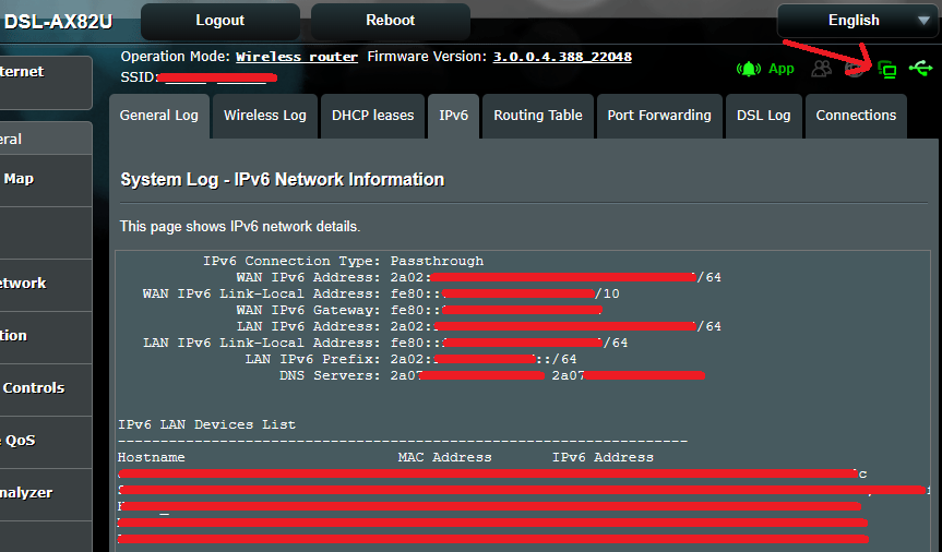 >Internet Connection> WAN Connection Type set [PPPoE], please select IPv6 Connection type set [Native] https://www.asus.com/support/FAQ/113990You are right about this because I have been using Native mode for 2 days without any problems. As a result of the backup restore (I had reset the device while shooting a narration video) the already selected Passthrough WAN did not receive the IP. For a change, I switched to Native mode and noticed that it started working. I haven’t changed it for 2 days and it continues to work.