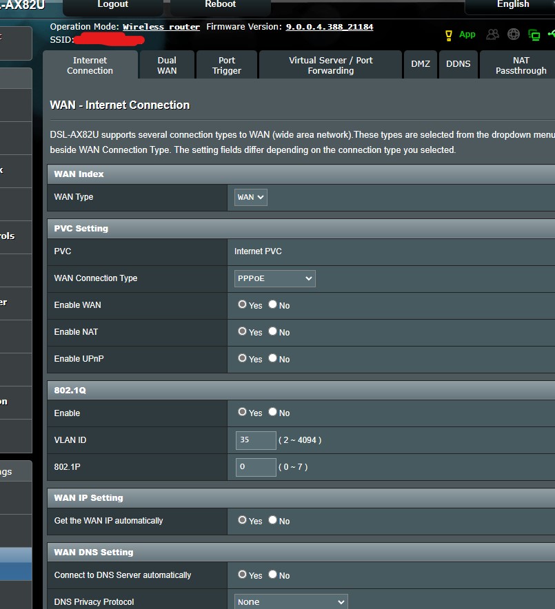 Thank you @uk-sentinel and a small piece of information I would like to add is that I have been using PPPoE over FTTH for 7 months, and there have been no problems so far. The Asus WRT interface has all the necessary settings for PPPoE. Before the team came to set up the transition from VDSL to FTTH, I had already made the same VDSL (WAN) setting as WAN (WAN). When the fiber connection was made, it was sufficient to just connect the ONT’s LAN port to the Asus WAN port, and my Internet access continued uninterrupted.